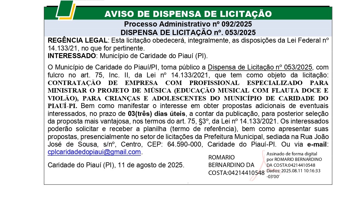 PREFEITURA MUNICIPAL DE CARIDADE DO PIAUI