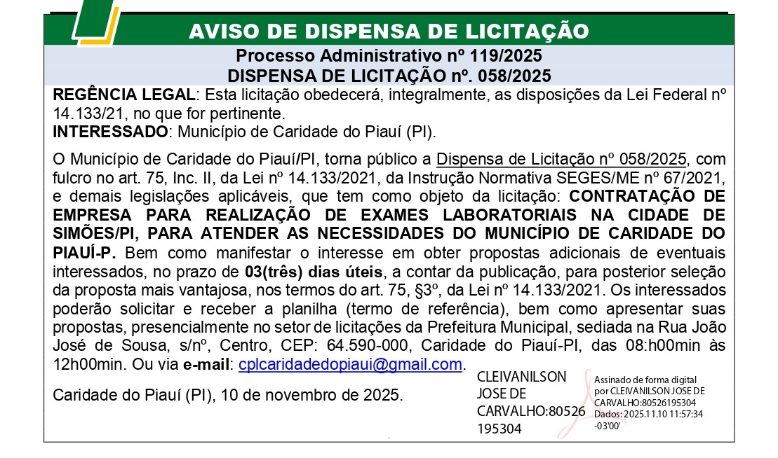 AVISO DE DISPENSA DE LICITAÇÃO N° 058/2025