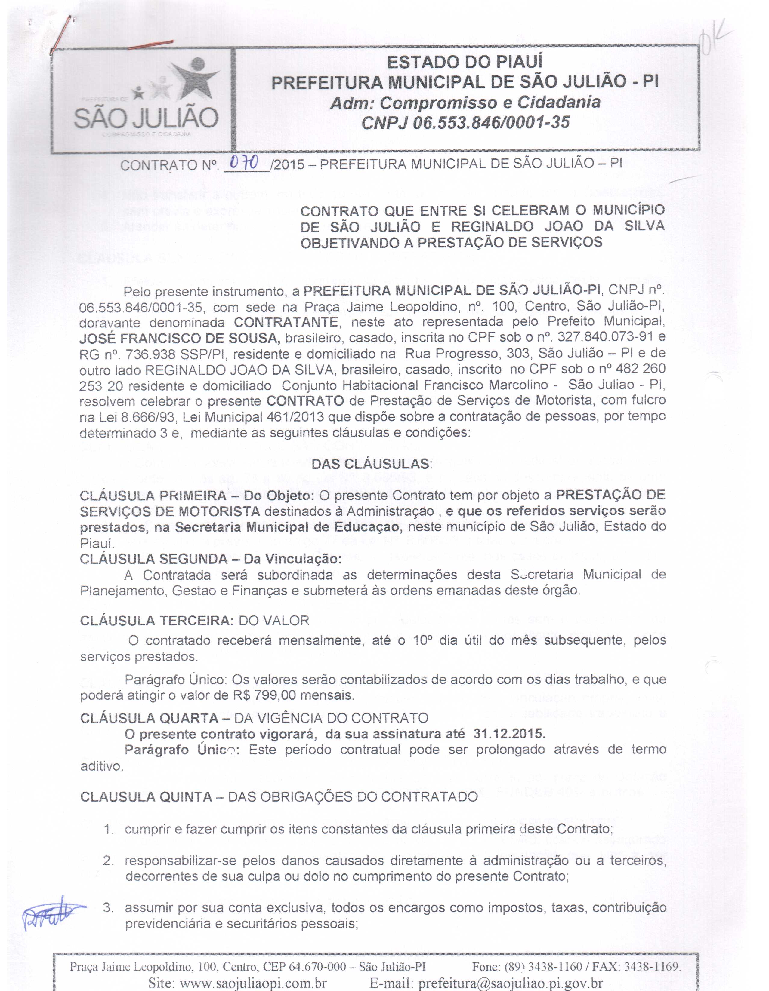 | REGINALDO JOÃO DA SILVA - SERVIÇOS DE MOTORISTA NA SECRETARIA DE EDUCAÇÃO. |