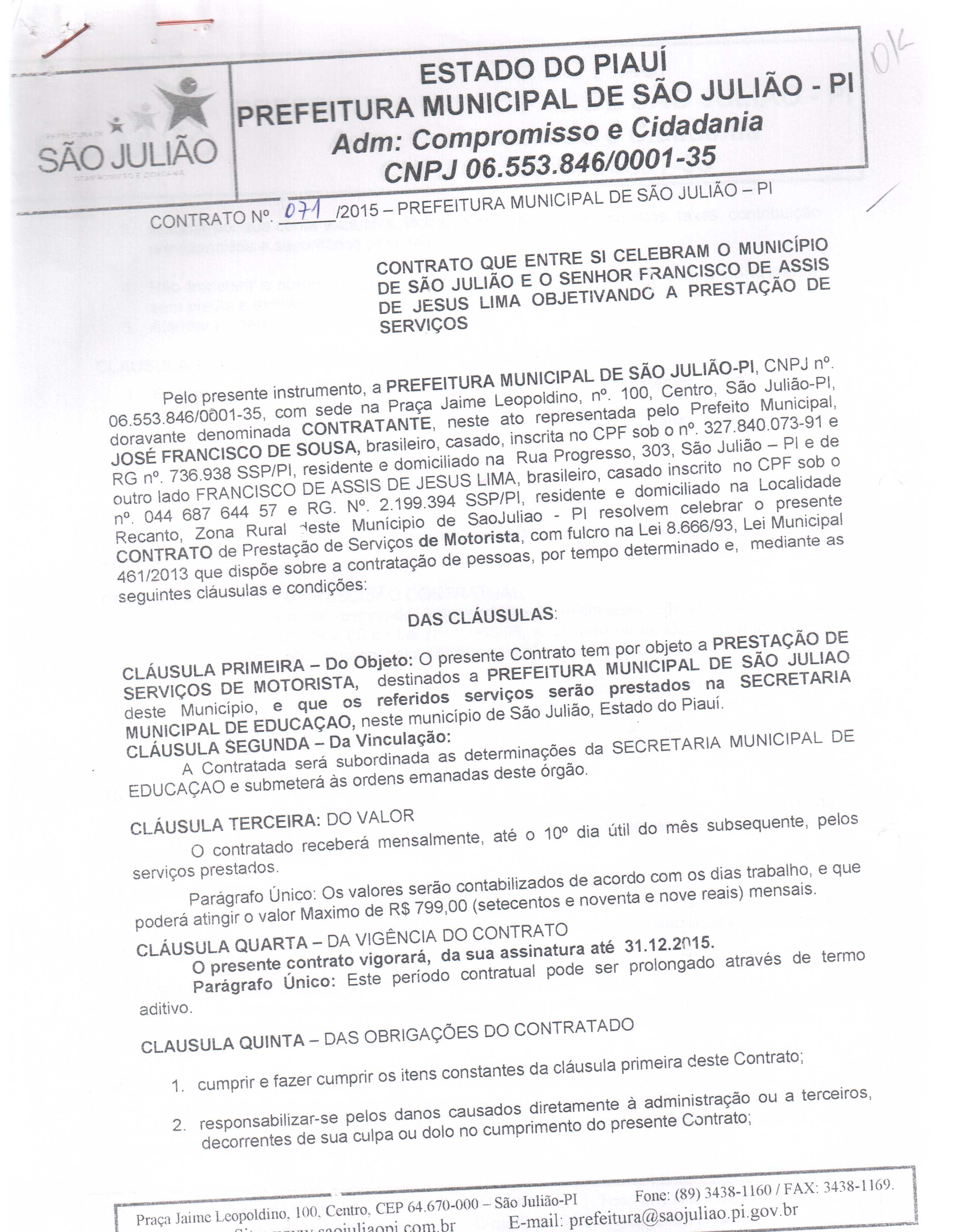 | FRANCISCO DE ASSIS DE JESUS LIMA - SERVIÇOS DE MOTORISTA NA SECRETARIA DE EDUCAÇÃO. |