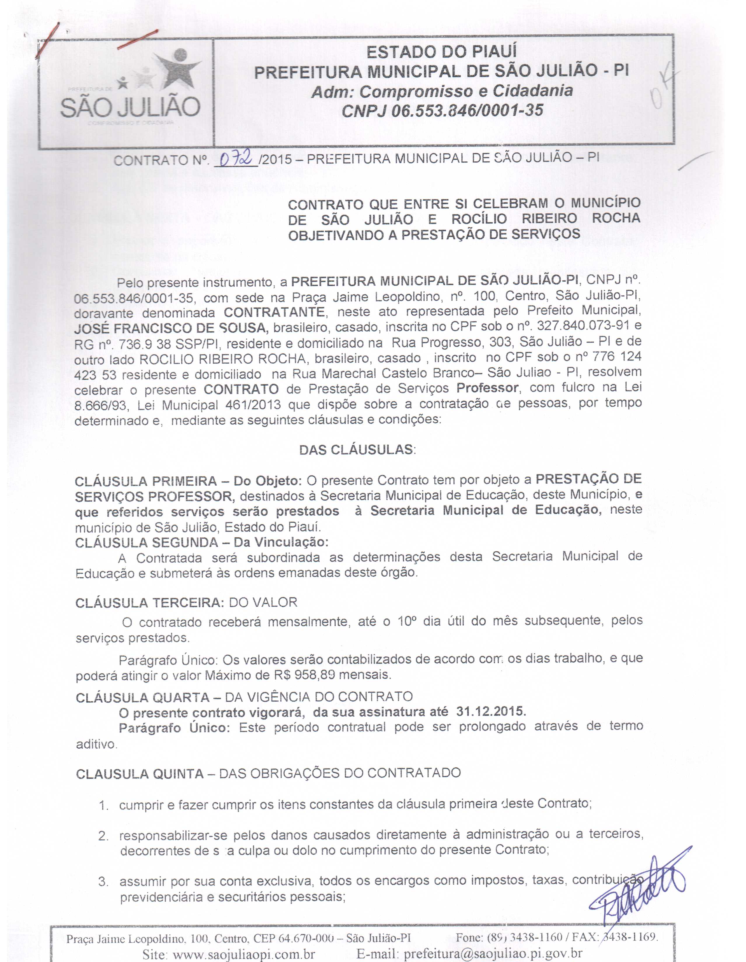 | ROCILIO RIBEIRO ROCHA - SERVIÇOS DE PROFESSOR NA SECRETARIA DE EDUCAÇÃO. |