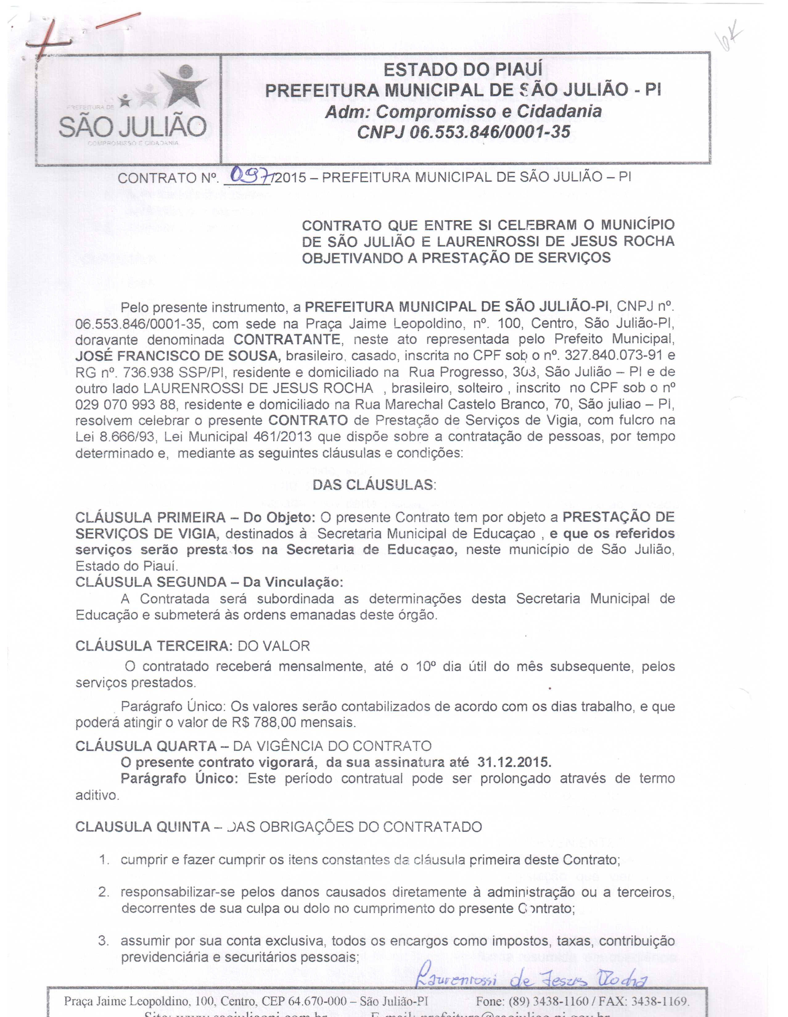 | LAURENROSSI DE JESUS ROCHA - SERVIÇOS DE VIGIA NA SECRETARIA DE EDUCAÇÃO. |