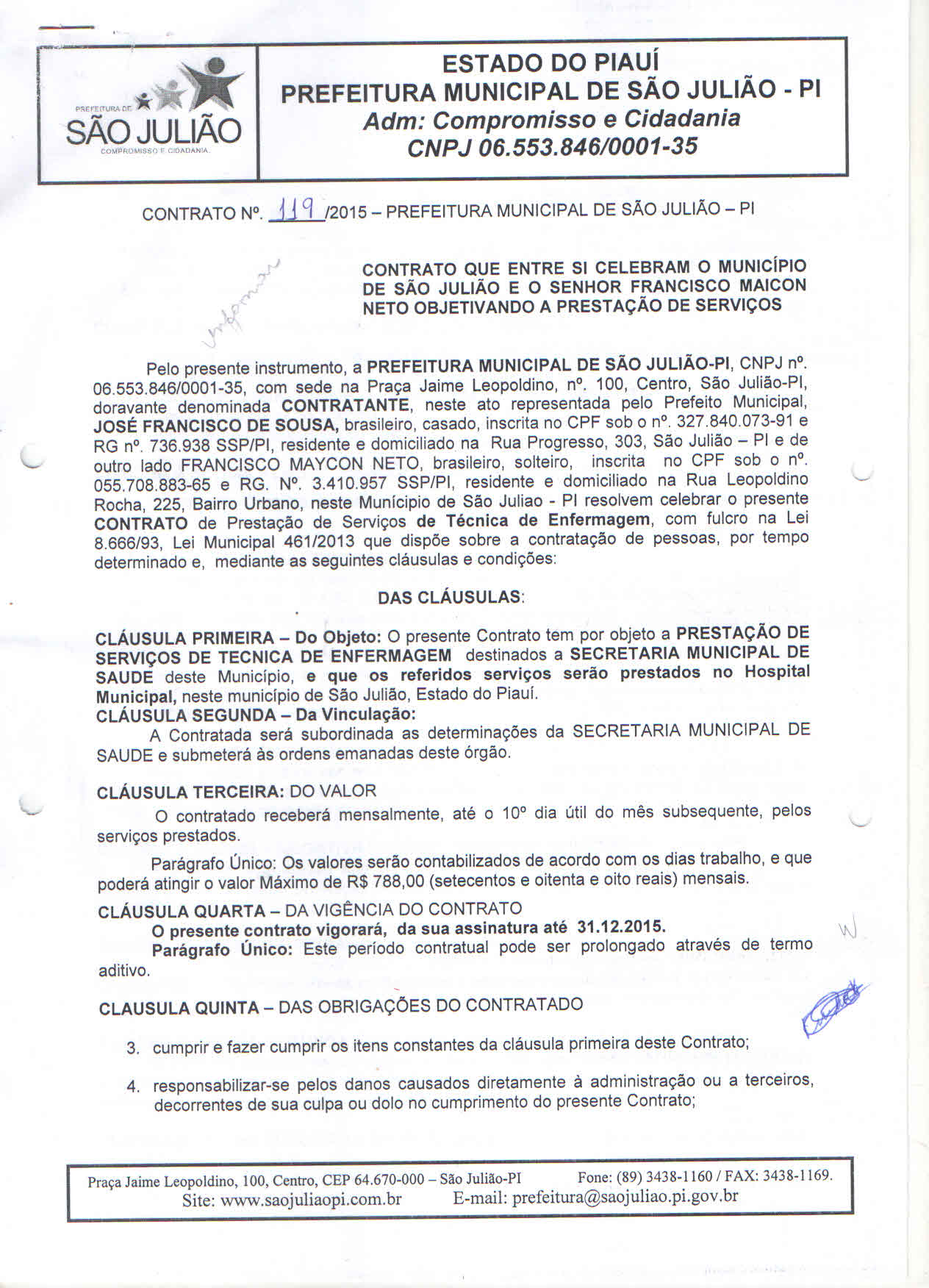 | FRANCISCO MAYCON NETO - TÉCNICO DE ENFERMAGEM NA SECRETARIA DE SAÚDE. |