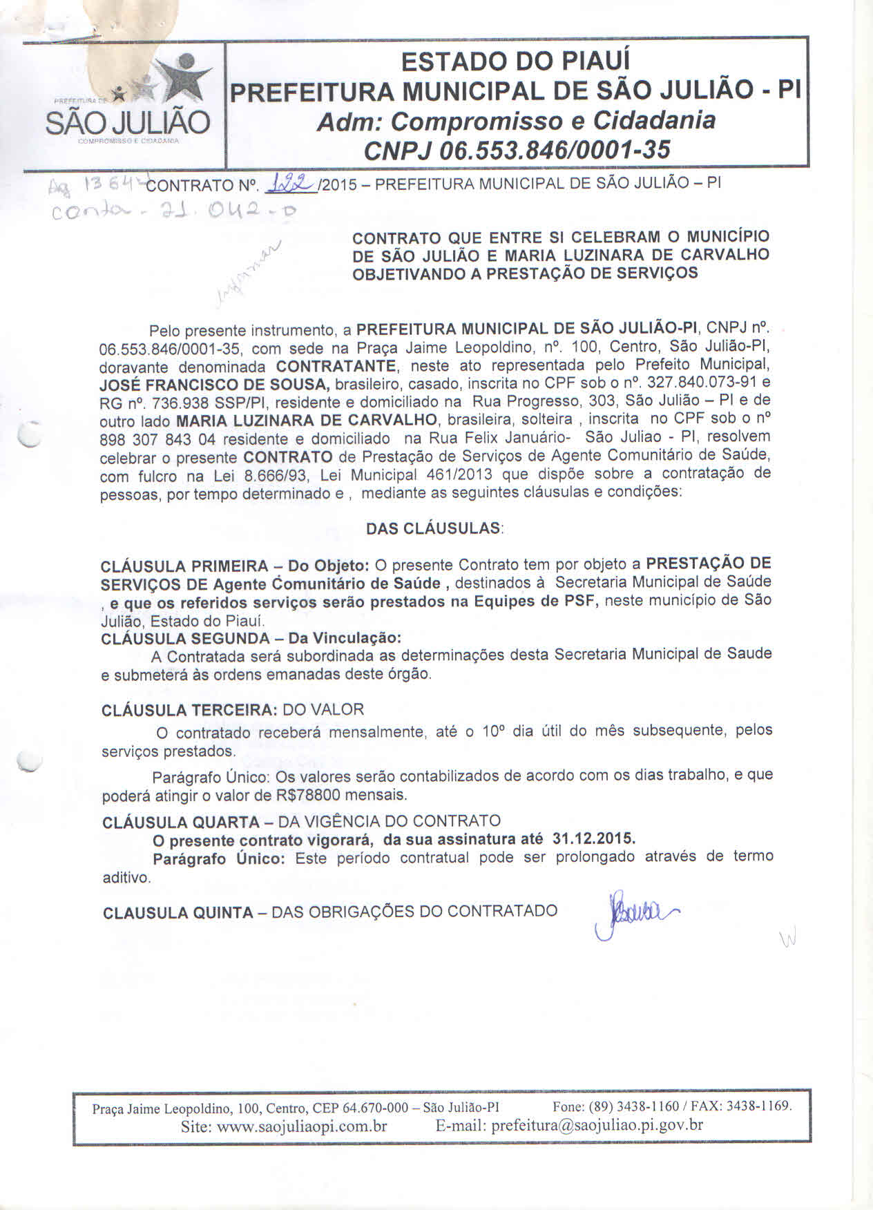| MARIA LUZINARA DE CARVALHO - AGENTE COMUNITÁRIO DE SAÚDE NA SECRETARIA DE SAÚDE. |