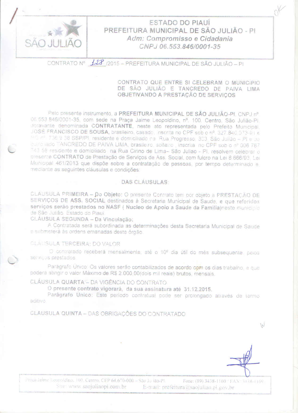 | TANCREDO DE PAIVA LIMA - ASSISTENTE SOCIAL NO NASF NA SECRETARIA DE SAÚDE. |