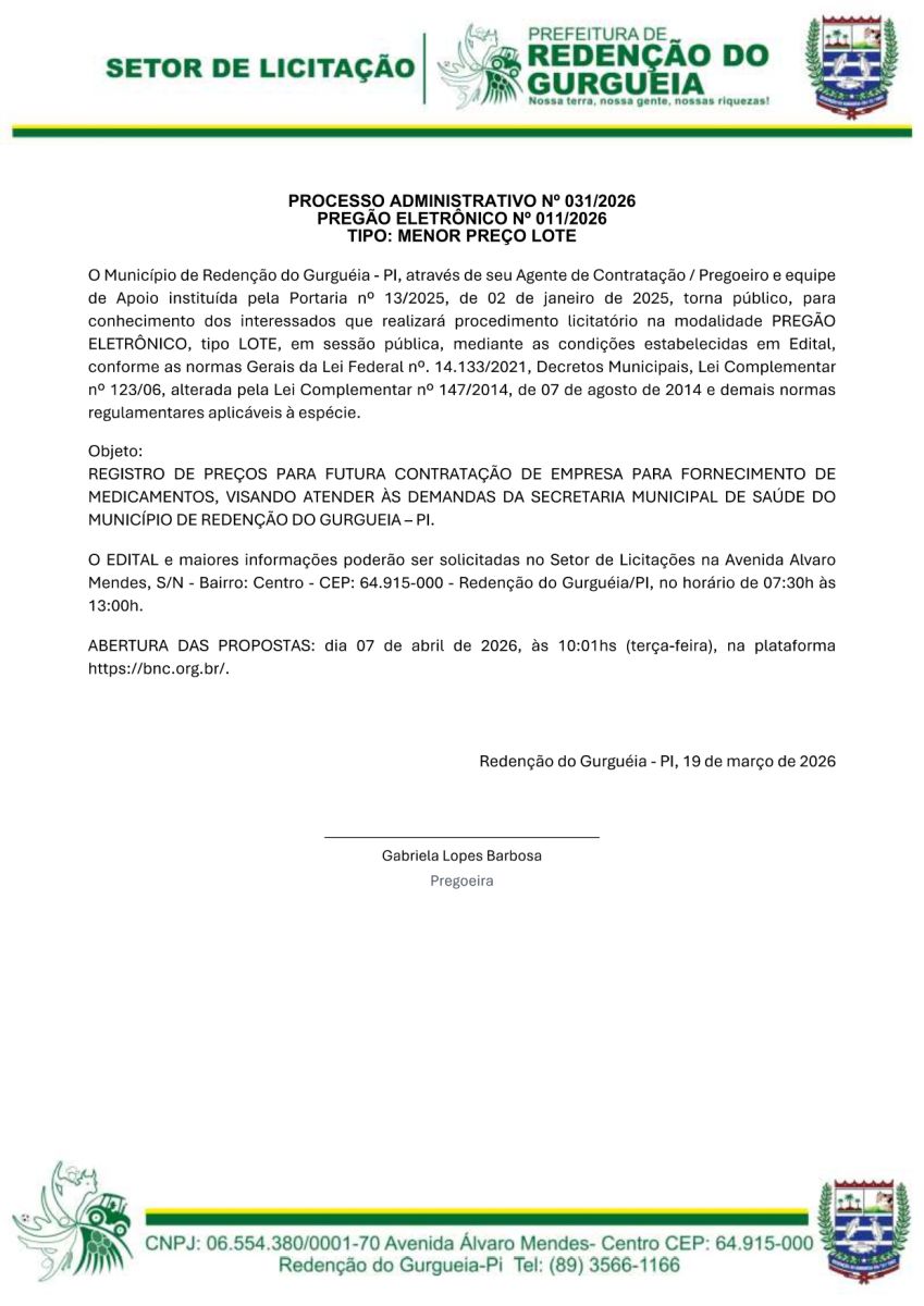 PREFEITURA MUNICIPAL DE REDENÇÃO DO GURGUEIA